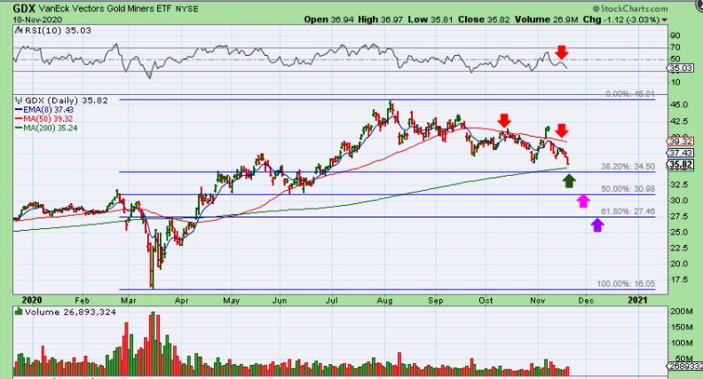 GDX has the 200sma as the 38.2%, but there are lower ones that are valid too. The 50% is roughly $31 for example.