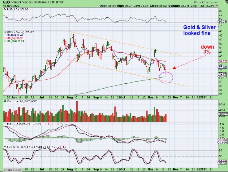 Precious Metals: I always start with Gold & Silver, but today we’ll start with Miners: This didn’t look healthy.