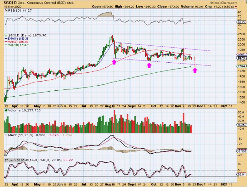 Back to the GDX Chart: Do GDX dropped and I have been drawing this channel from time to time. It leads below the 200sma, so we may see a shake out here if this drop continues.