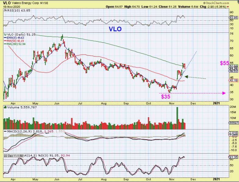 VLO has now moved from $35 to $55 in less than 3 weeks. It has been POP and chop on the way higher but it is getting the job done.