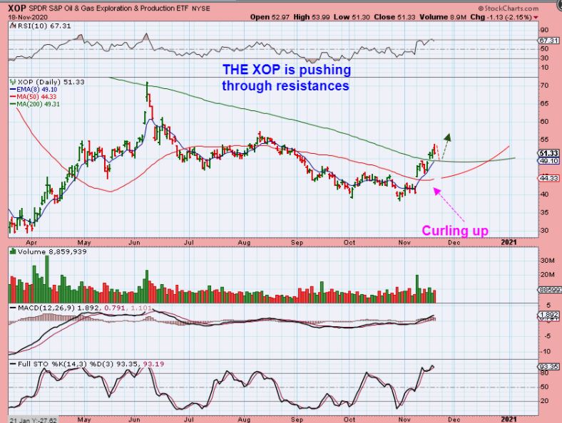 THE XOP has been breaking through overhead resistance and the Oil & Energy Stocks have been pointed out as doing very well.