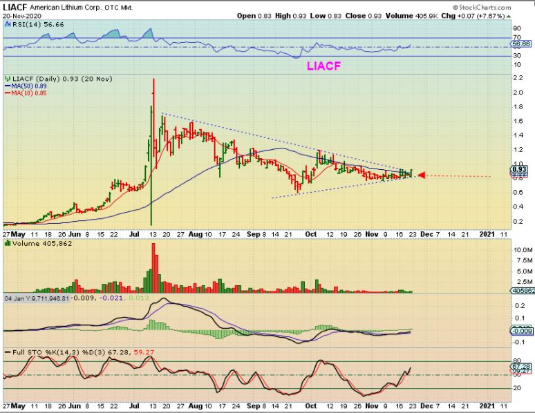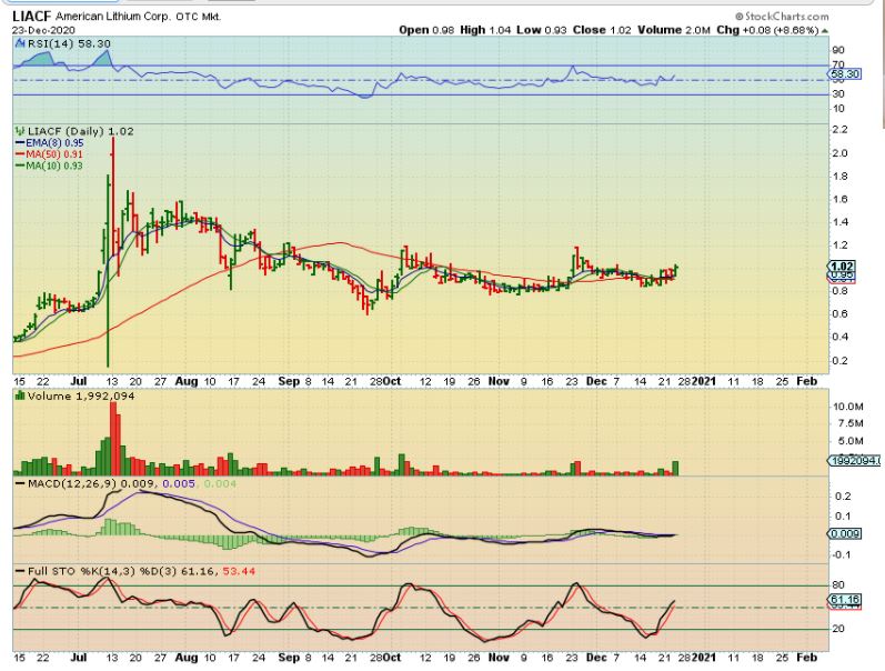 LIACF – We traded Energy, Lithium, EV, etc in November and I posted this as a BUY near 90 cents. LIACF actually did rally higher, but…