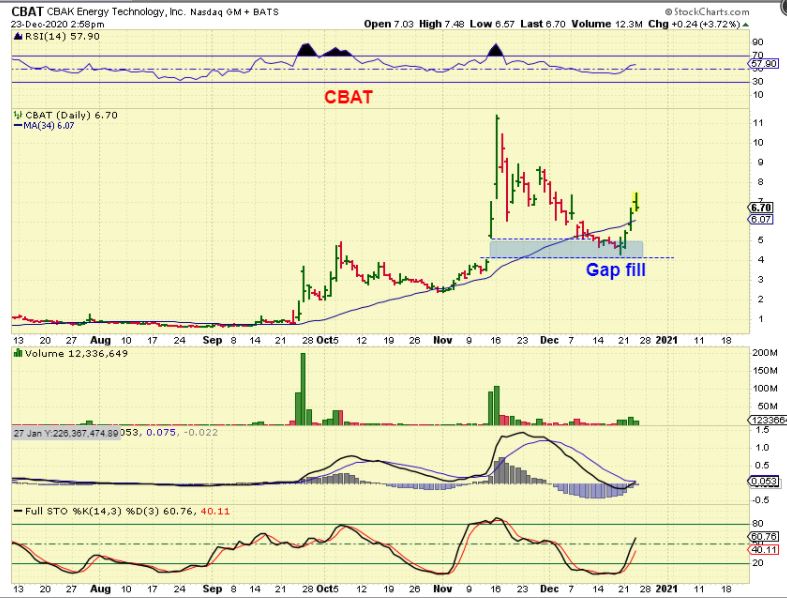 CBAT was posted recently and as you can see, yesterday it Popped & Dropped to gap fill yesterdays gap open. IS THAT IT FOR UPSIDE POTENTIAL? I don’t think so and I still own it…