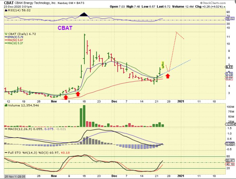 CBAT – This sector is on fire and I still see CBAT as eventually completing a cup here, even if it drops further to the 10sma. It can run to November highs and even break out and run even higher too. These are BIG %-Gainers.