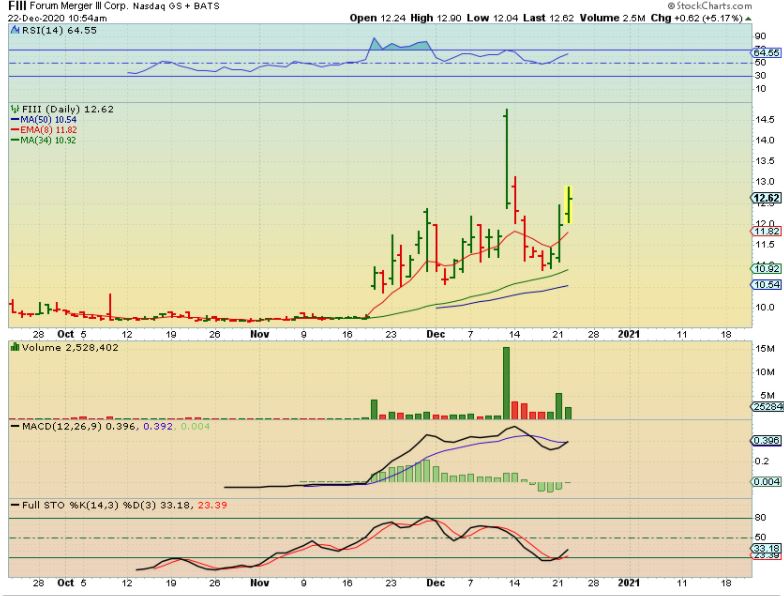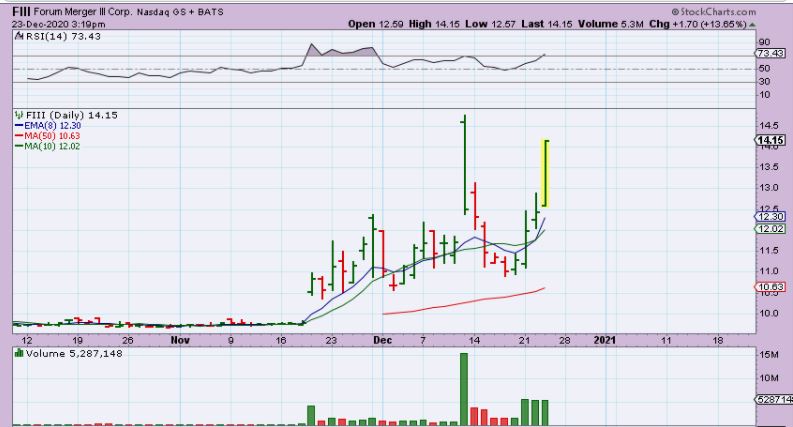 FIII ( F i i i ) – Yesterday this was mentioned as a set up that I bought, and it is the same Bullish set up and sector as past SPAQ / ACQUISITION Stocks that exploded higher. It is similar to the sector that IPOC is in.