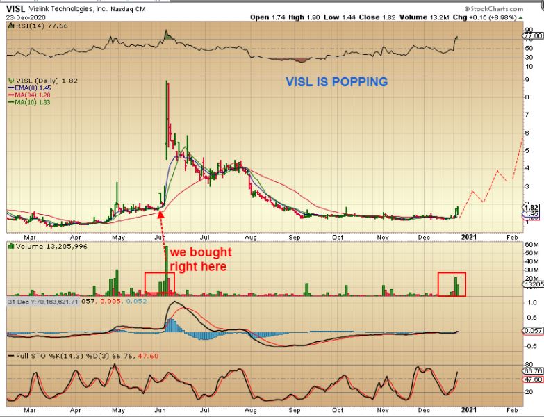 As a side note: VISL is one that I have traded a few times and we caught that MASSIVE explosion higher in June by buying that base in May. I think now it may gradually start a climb higher this time. It is popping too.