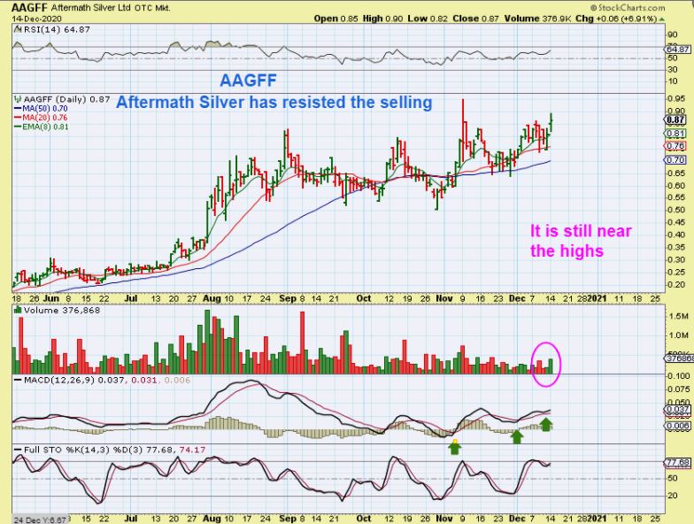 I have mentioned several times that I own & have treated AAGFF as a BUY & HOLD. I have owned this one for a long time actually. It was up 10% at one point yesterday and is near the highs, even with GDX & GDXJ selling off. If it does pull back to the 20 or 50 sma again, you may want to buy it. I may want to add again.