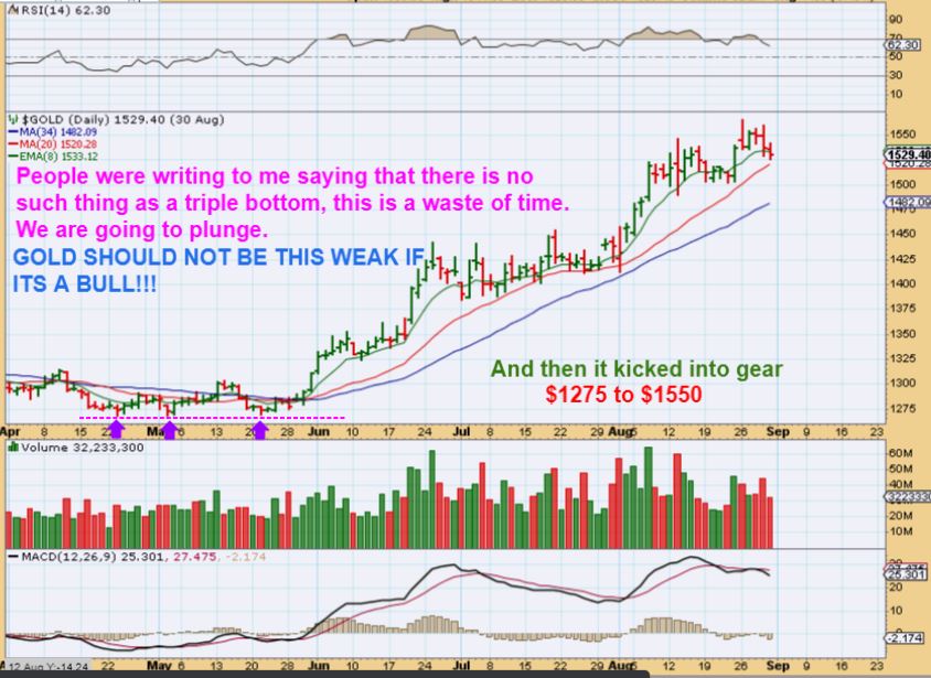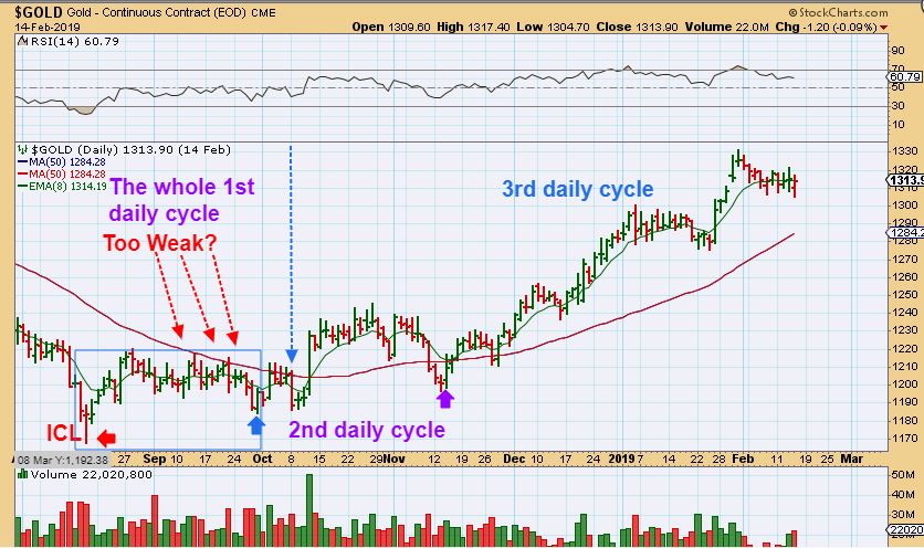 GOLDs Summer ICL in 2018 was horrible. After a high volume spike down low, we bought that as an ICL. The entire first daily cycle brought us back to that low, it was unable to get above the 50sma. The 2nd daily cycle was No Better! We broke out above the 50sma and then chopped sideways and lost that 50sma again, dropping down into a dcl. DONT YOU THINK PEOLE HATED & DOUBTED THE GOLD BULL THEN? 3 weeks at the lows and we had 2 weak looking daily cycles. Then the 3rd daily cycle took off to the upside.