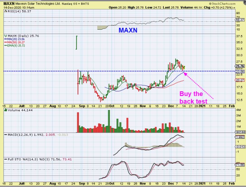 I sold my MAXN to lock in good gains ( my position was good sized since Solars have been very bullish) and now I think that it is a buy again. It back tested that break out and is a buy.
