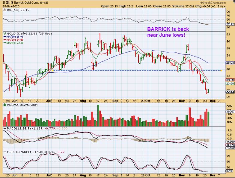 Recently I showed a few charts where the selling definitely looks like an ICL sell off. Some Miners like this chart of Barrick ( pointed out on Nov 25th) shows that some Miners just sold off day after day for 2 weeks. $30 to $20 is no fun if your holding on to several of these. Next…
