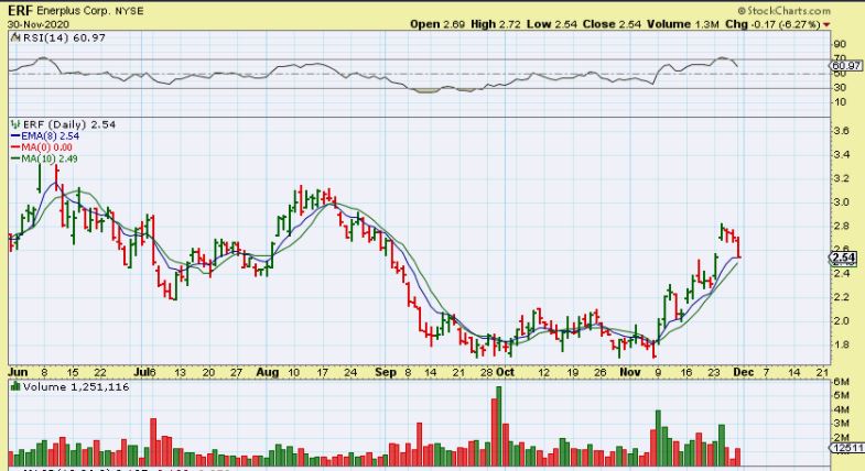 ERF dropped and did a gap fill to the 8 ema on light volume. It didn’t do a reversal or close off of the lows, so it really needs another day to be safe and see what it wants to do.