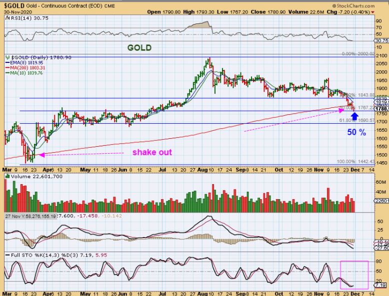 EDIT : GOLD AT 7 a.m. – I am seeing GOLD put in a swing low and also looks to be regaining the 200sma. It has not taken out the down trend yet to satisfy our cycle trade entry, but in Technical analysis you could buy with a stop under yesterdays lows.