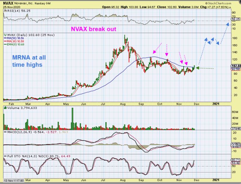 MRNA & BNTX have been running strong to new highs so you may want to hold NVAX and let it run. AND…