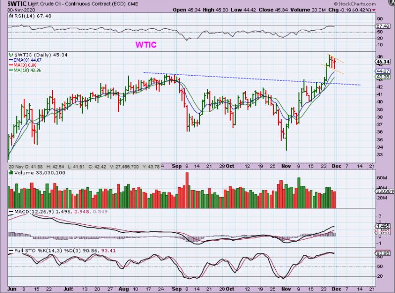 WTIC is now chopping sideways a little, consolidating a solid month of gains. This is normal price action.