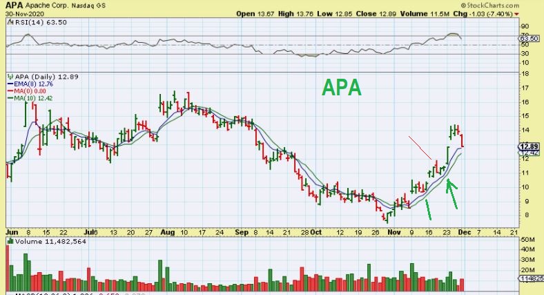 1. The last drop that APA made to the 8 ema was also a sharp 1 day drop.