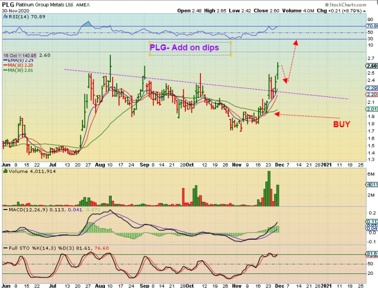 PLG DAILY – No pull back yet and PLG ran higher Monday. With that weekly set up and this follow through, This is now in the ‘Buy the dips’ mode.