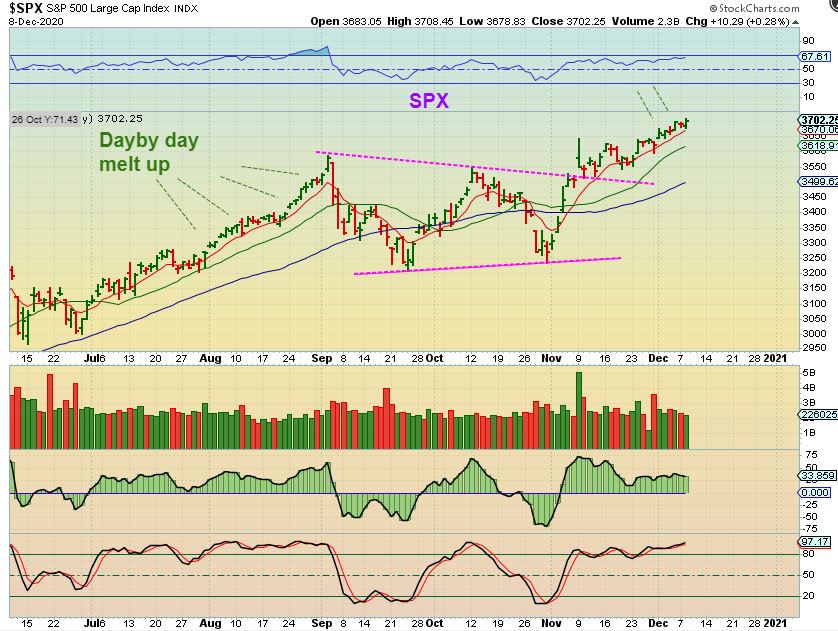 THE SPX was down on Tuesday again, but then it closed higher, so nothing has changed here. I am seeing signs for a pull back, but the Buy The Dips crowd seems to be doing just that. It is starting to resemble the melt up that took place right before the September drop.