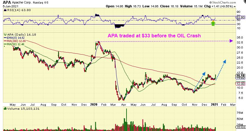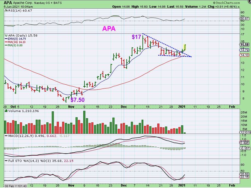 IN YESTERDAYS REPORT I SAID THIS ABOUT APA –  I see some of the OIL stocks that look like a buy set up at support. I wondered if we would get an A-B-C type of drop to support, but this may be all we get.