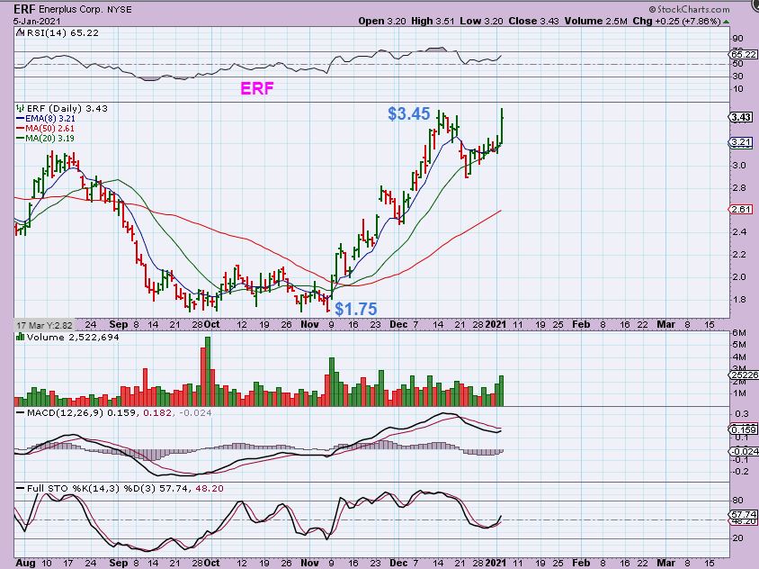 You may recall that I also bought and recommended ERF AND LPI. They both broke out and closed up with high volume too, so as mentioned in yesterdays report: These were and are a buy.  I know that I can hear someone out there saying, “Well, I was working and didn’t buy, so how do I buy it now?”  Notice this…