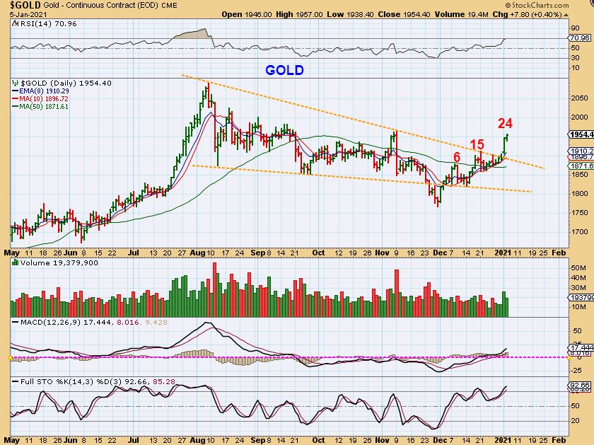 ACB closed up over 14%. These move very fast, so they may not be for all traders ( they drop as fast as hey run), but this can run very quickly as seen on this chart. I wrote in my November & December reports that I thought this sector may be bottoming with the Biden Election Win in the US. They immediately Popped and have now consolidated.  The sector looks bullish again, read the chart.