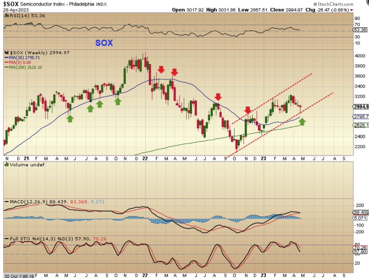 Did you notice that the SPX (& Nasdaq) ran higher for the past couple of weeks? Well, The SOX, which used to lead the way, did not. The SOX dropped for a few weeks and simply gave us a reversal off of a lower trend line this week. I am thinking that this may rally into the Fed Mtg and then continue higher. SOXL May be a good trade if the SOX plays catch up over the next couple of weeks.