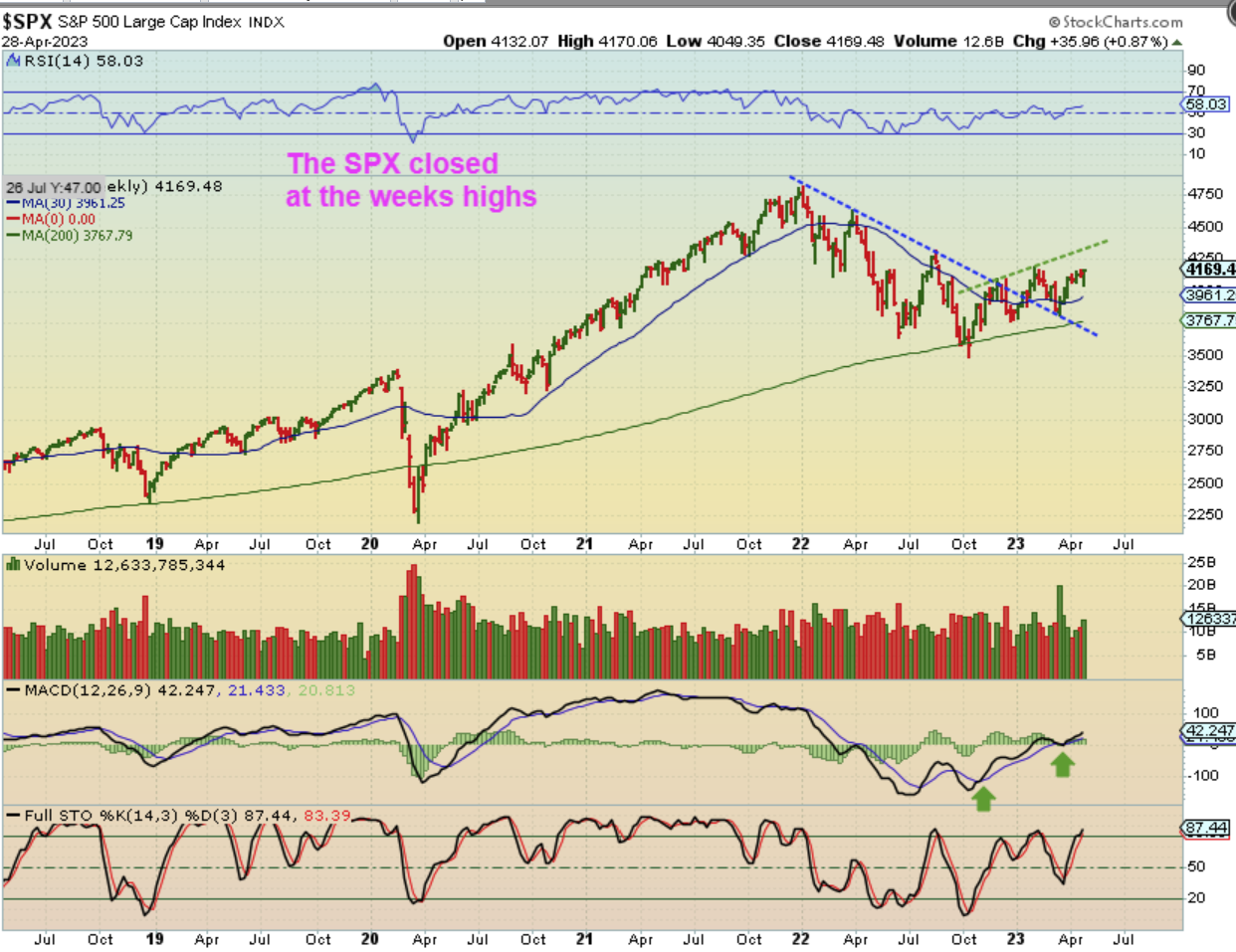 The SPX Weekly – Back at the end of 2022 I started to mention that the bear market was 1 year long and usually that can be enough to kill frothy sentiment and re-set things. I was thinking that the Bear ended and The Bull may begin again. So …