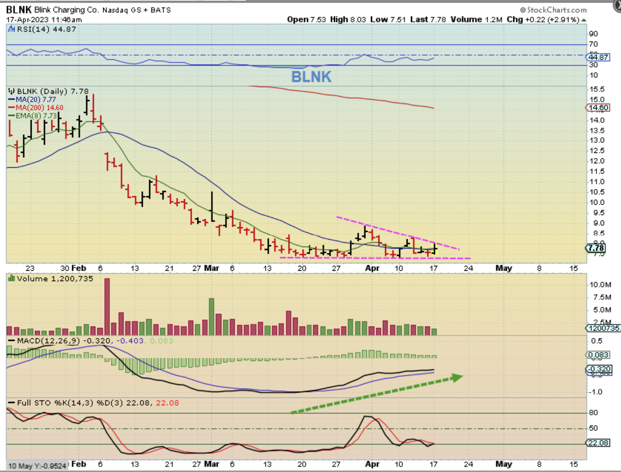 BLNK looks like it had an ICL sell off, but is bottoming and offers great potential. This is a bullish pattern at the low. BLNK under $8 seems like a bargain, we’ll see.