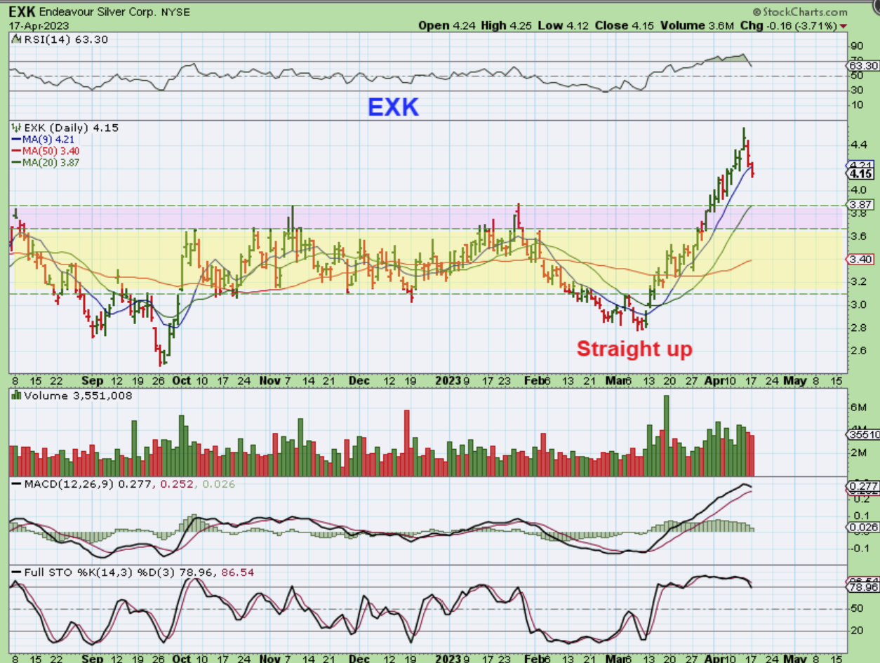EXK – Many of these Silver Miners ran very strongly after we bought at the 50sma, and this dip is a buy because of that.