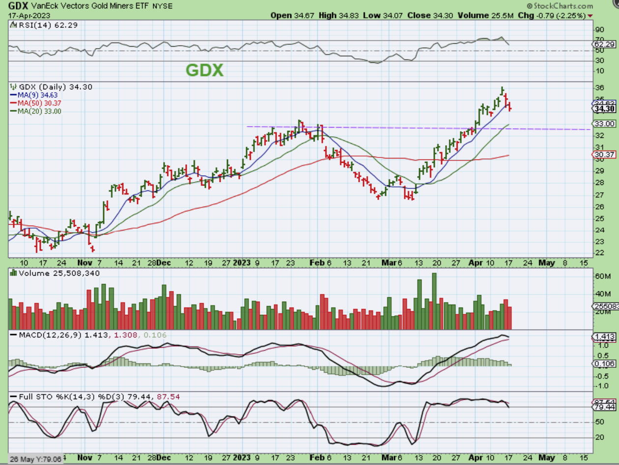 3. I added the 20sma and the prior highs could act as support here too. That would be GDX $32-$33 as a possible area to reverse.