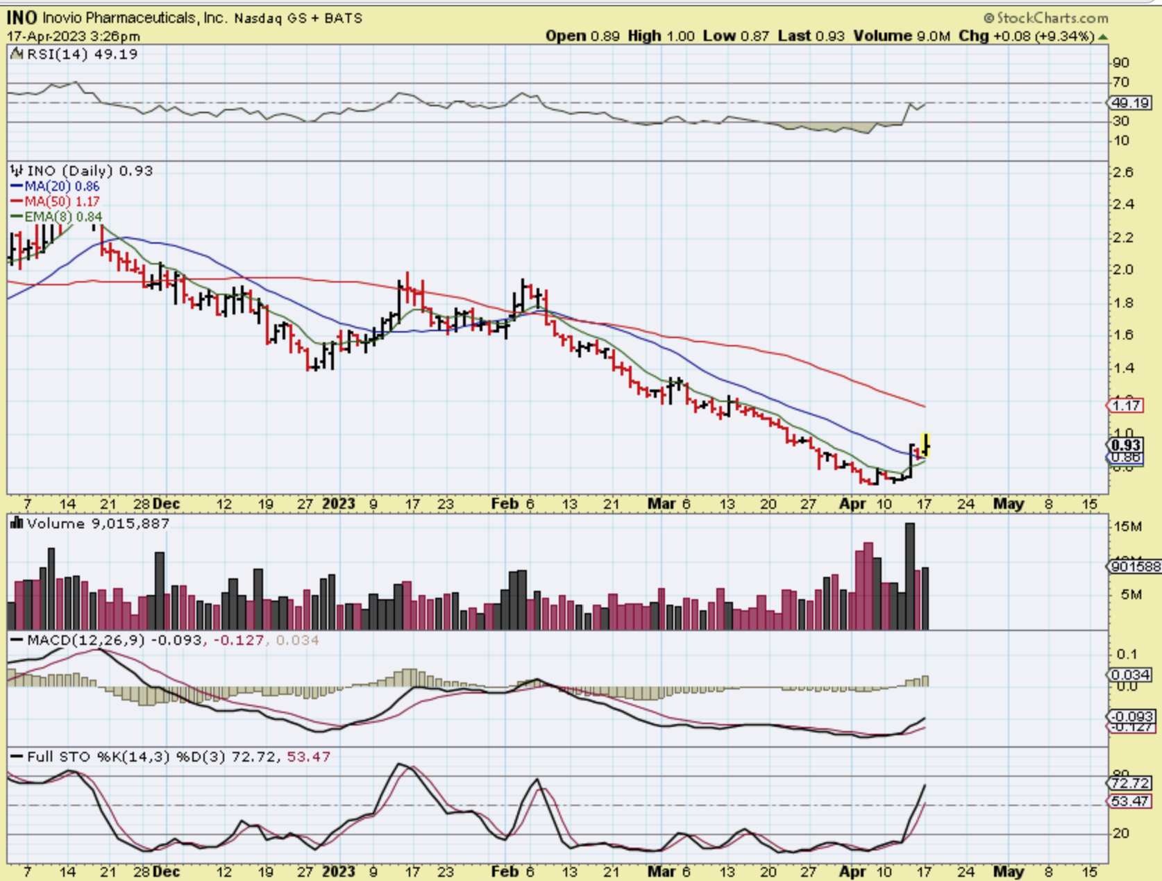 The Biotech stocks are Popping (Some in a BIG WAY), and so I’m looking at some that may be forming a higher low or have increasing volume. INO looks good to me as a possible BUY & HOLD, If this sector breaks out and runs.