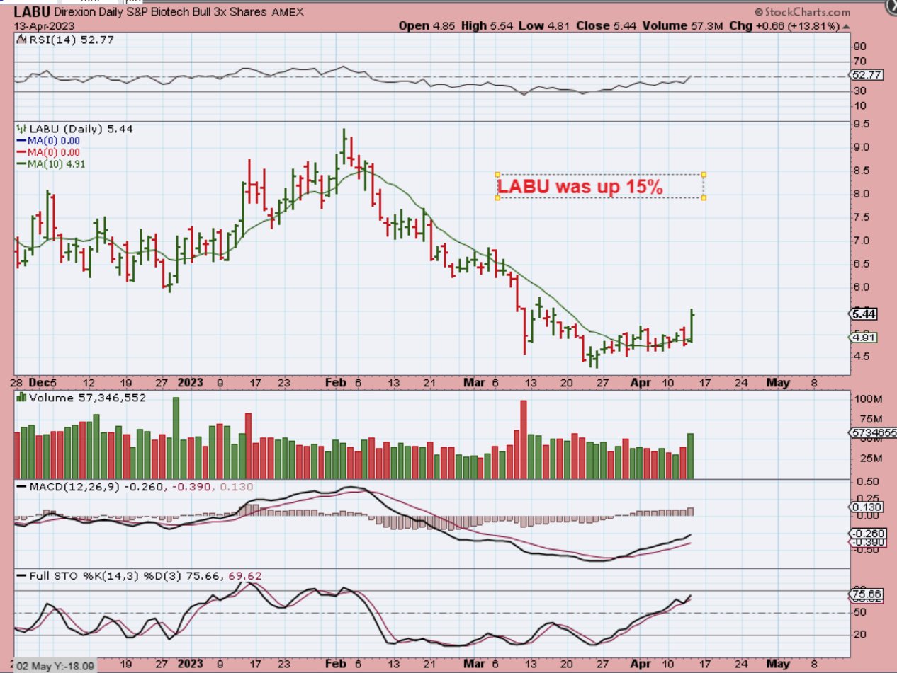 LABU was then in the report again on April 13th, since it went sideways and Popped 15%. This was last week and…