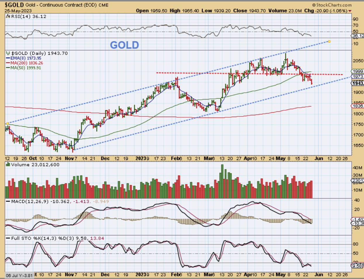 As the USD was steadily rising, GOLD resisted the drop for a bit with some sideways chop, but yesterday Gold dropped again. We are now almost at that lower trend line that I drew a while ago. My thinking for Gold is a June ICL and a peak for the USD in a 2nd daily cycle in June too. I’ll discuss this in the weekend report. THAT ICL will be a very bullish and important buy opportunity for the MAJOR breakout.