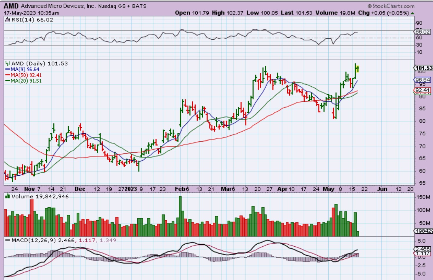 AMD – I posted this at 10:30 am in the comments and mentioned that those semis looked bullish. AMD went on to close at new 8 month highs yesterday. You can see how this was a ‘Buy the dip” candidate once it recovered the 50sma.
