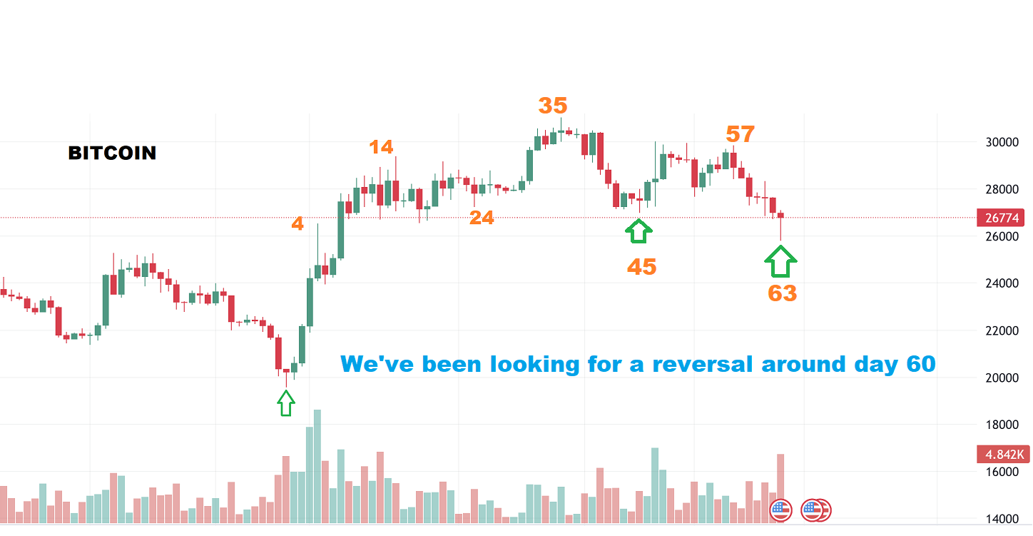 I posted this chart a week ago when I discussed that I look for 30 & 60 day dips in Bitcoin to mark a 1/2 cycle low and a dcl . This was the day 63 reversal. that should mark the dcl. I then showed MARA, RIOT, CIFR, CLSK, etc as having had earnings already released, and reversing bullishly with Bitcoin. So again, I posted this last week…