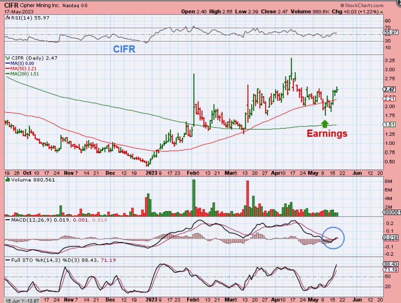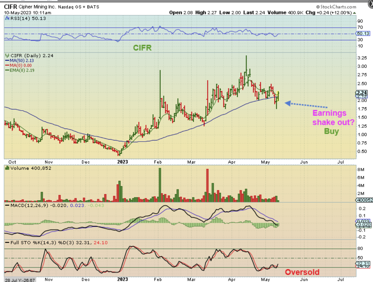On May 10 last week I pointed out that CIFR released earnings too, and looked like a shakeout recovery buy in the $2.00 area.