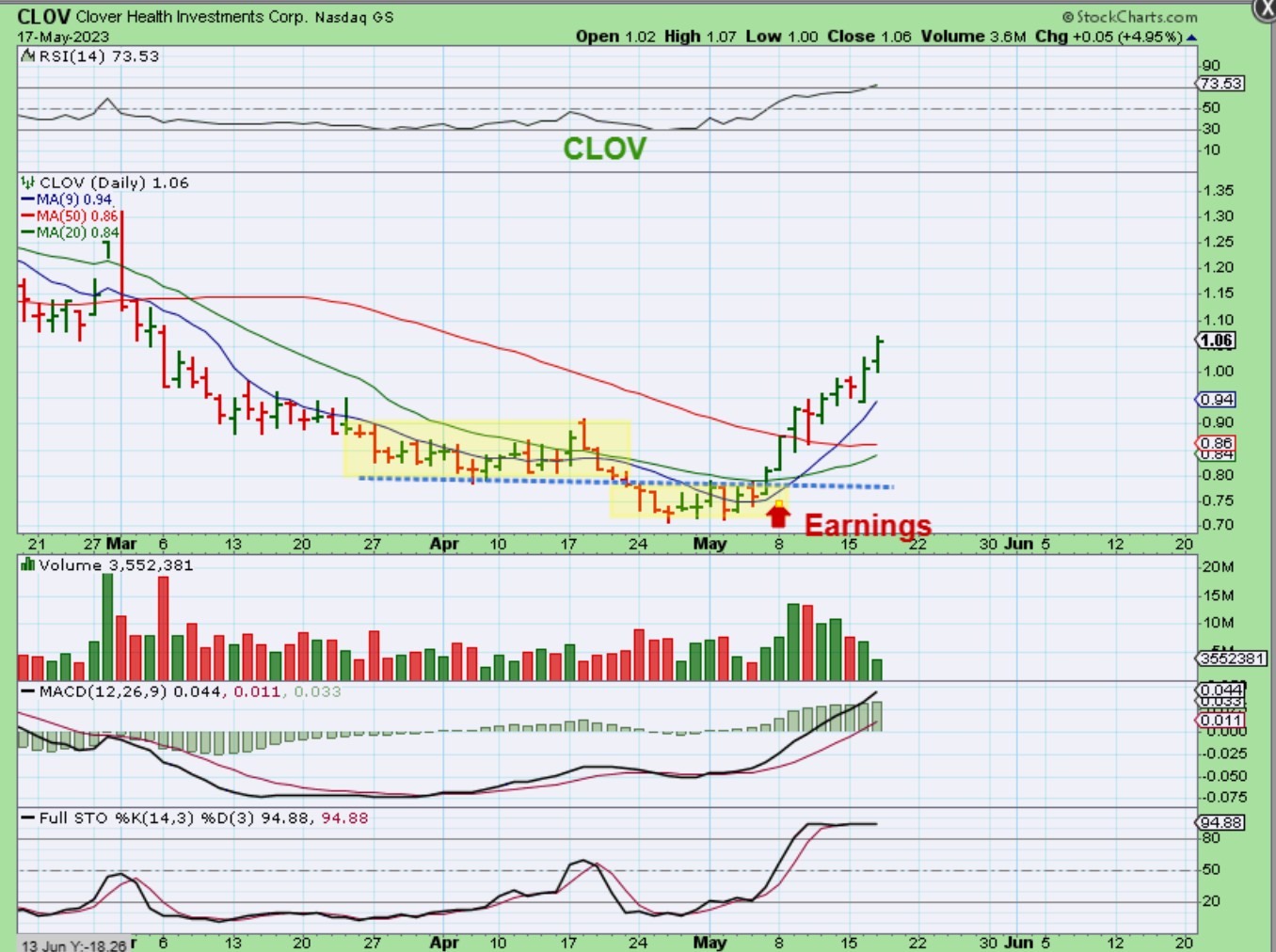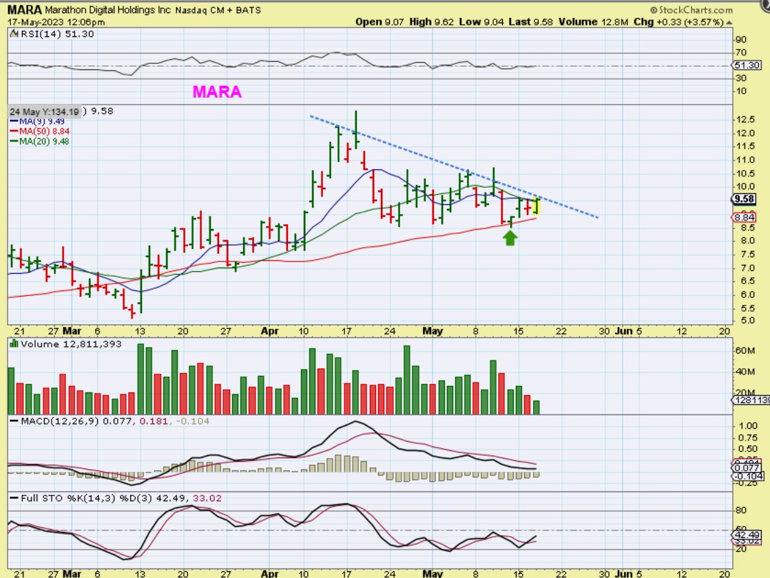 MARA – I actually posted this in the commenting area yesterday to show a bullish set up. The reversal at the 50sma is where MARA released earnings and it looked ready to break the 10 & 20sma and tight downtrend. You could use that as a stop.