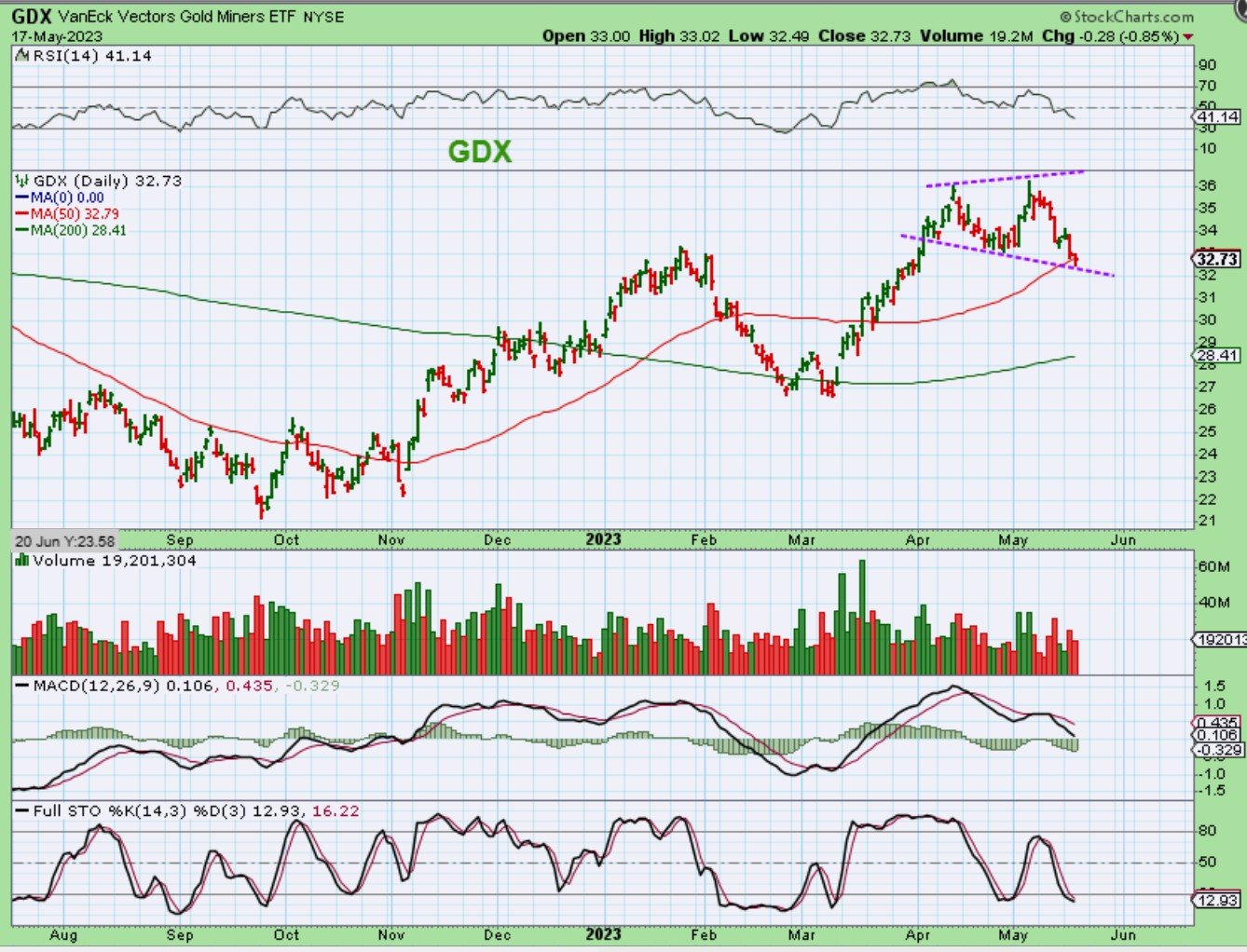 I can justify The GDX drop with a megaphone or bullhorn pattern.
