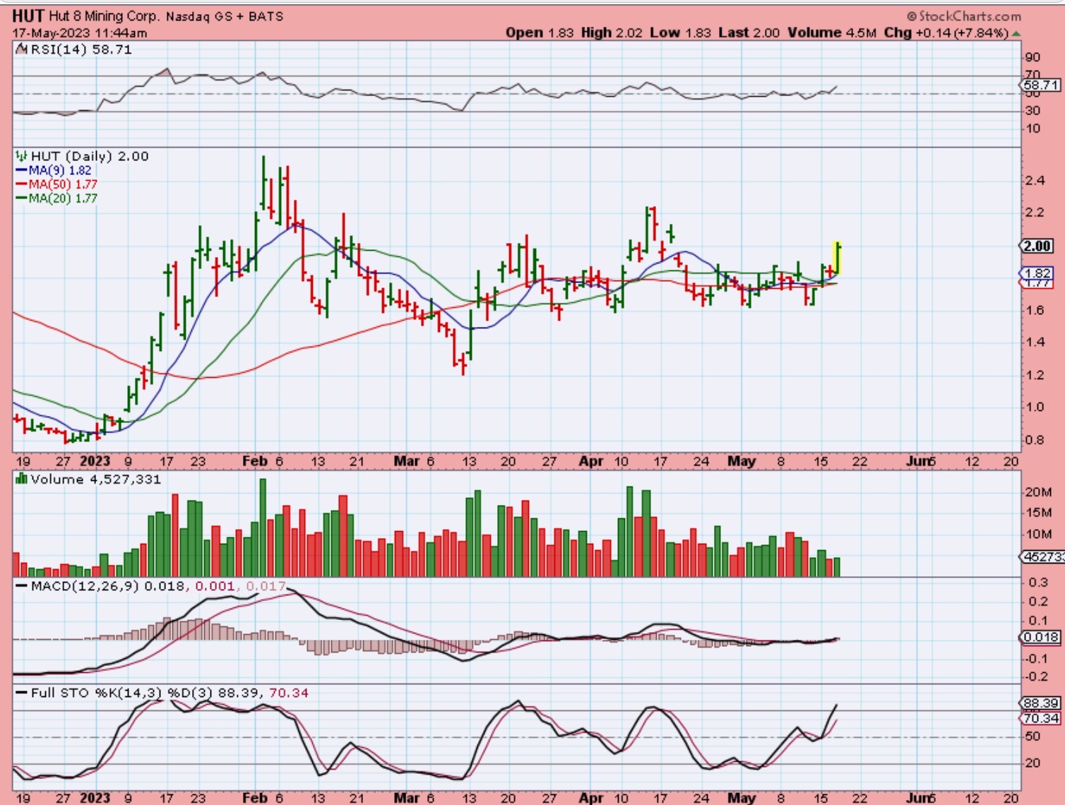 HUT released earnings 5 days ago at the latest lows. It started to pop as Bitcoin was red yesterday, so I posted this 7% pop. It looks like it wants to break out and run, but so far it has been very choppy consolidating recent gains.