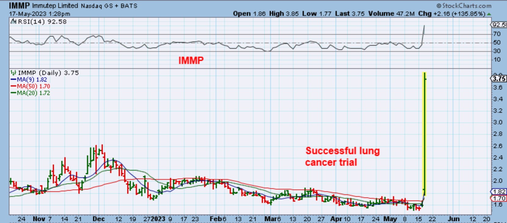 IMMP – Out of this base we have a successful lung cancer trial and the rest is history. I never chase these at this point, no matter how good the news is. I wait and see if it gives a dip later on.