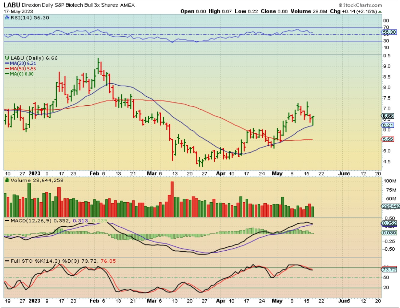 I’ve also discussed trading Biotech and LABU. Did you see this yesterday? That is a bullish reversal at the 20sma.