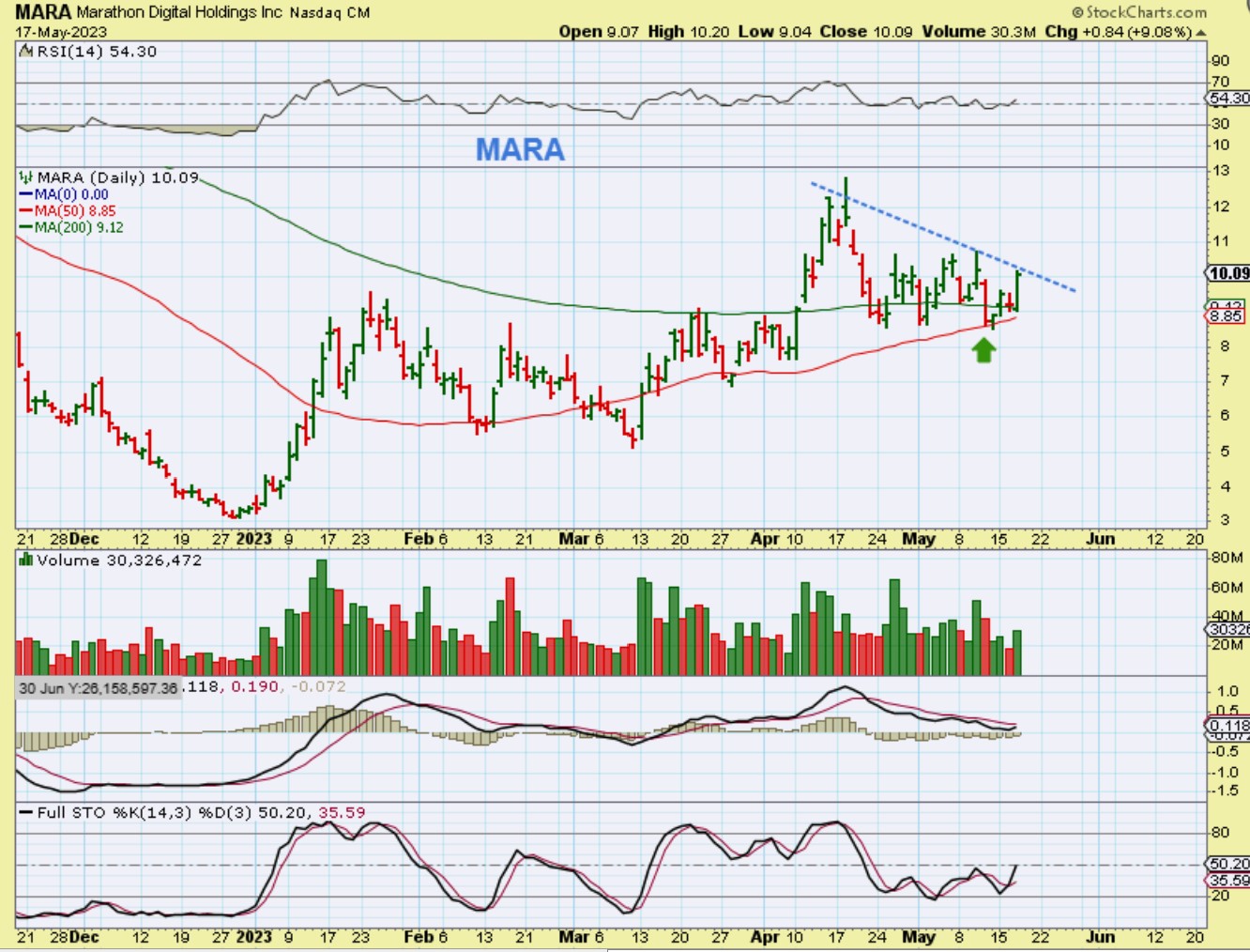 MARA broke out and closed up 9% yesterday. I loosened the downtrend to the current price.