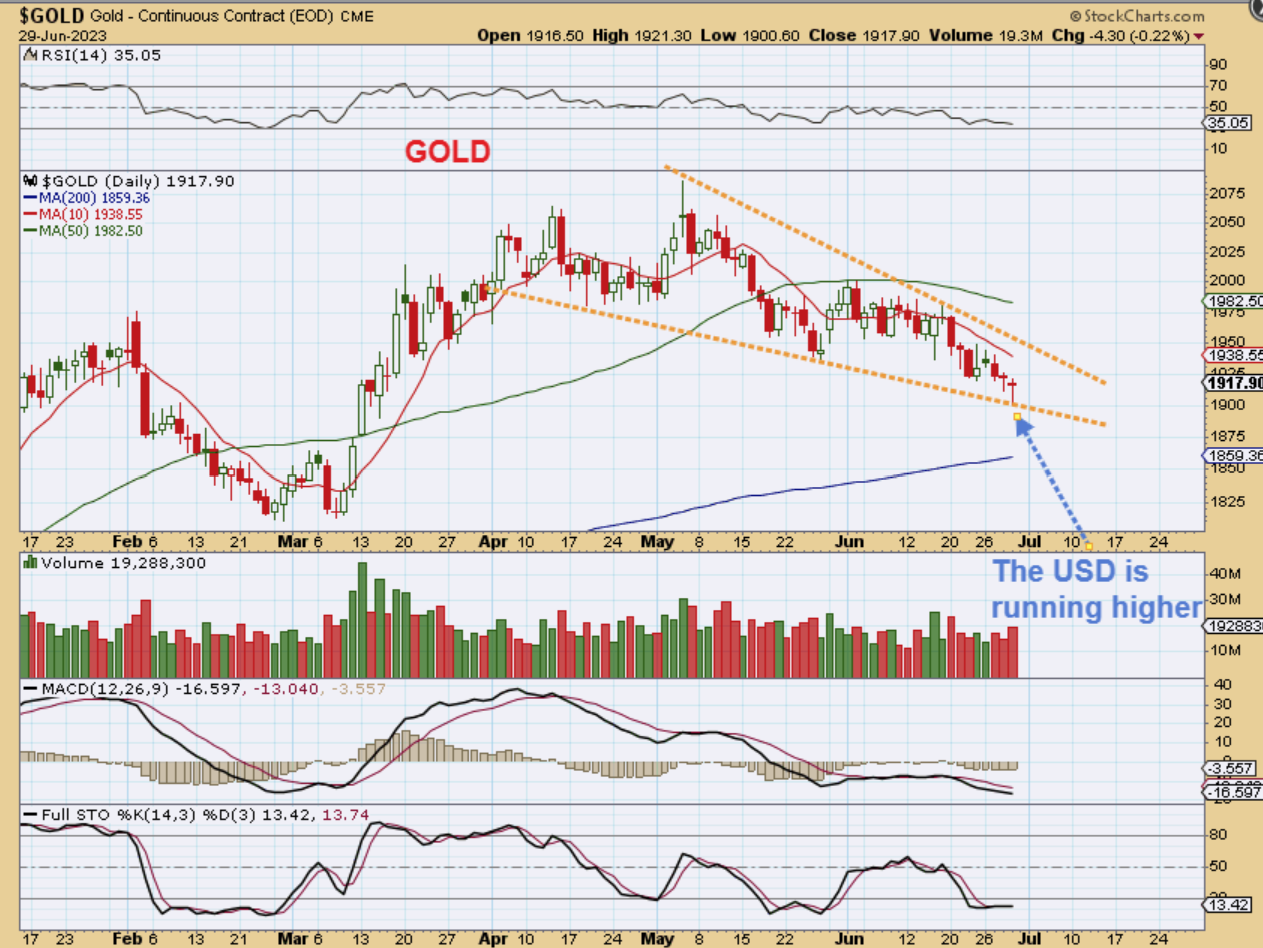 GOLD dropped and put in a reversal candle with that push higher in the USD. Gold is not dropping the way one would expect with the USD rising. Notice the lower trend line and…