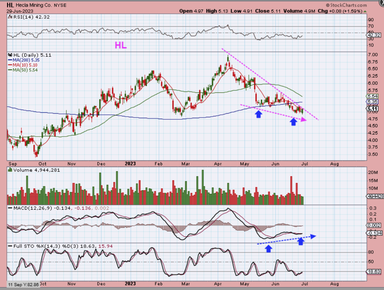 HL has strong divergence too. Other Silver stocks are showing the same divergence too.