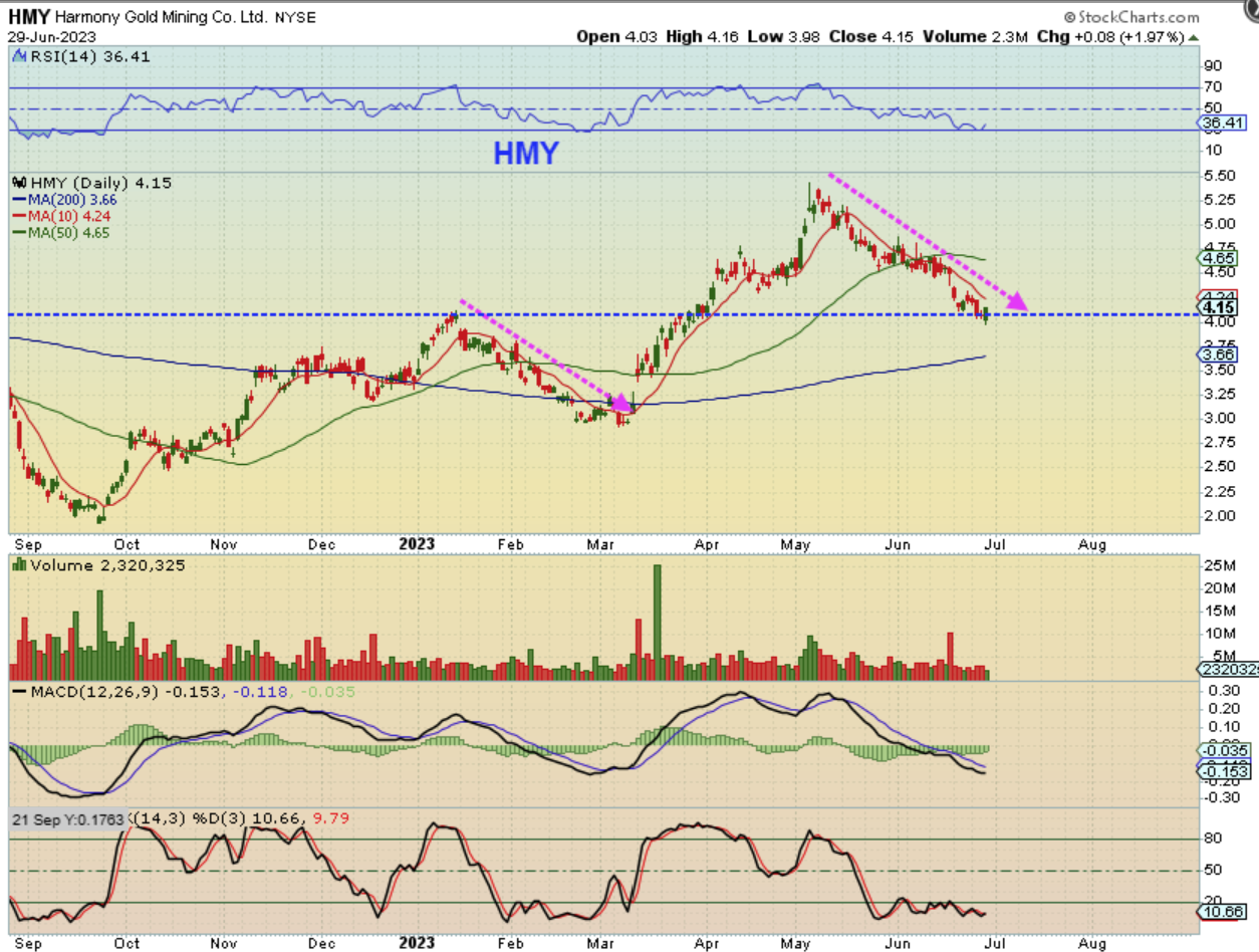 HMY finally joined in on the selling, and it may be at a support area. Again, we may be getting ready for Gold & Silver to bounce out of a dcl, or it could turn into something more if buyers pile in and shorts cover.
