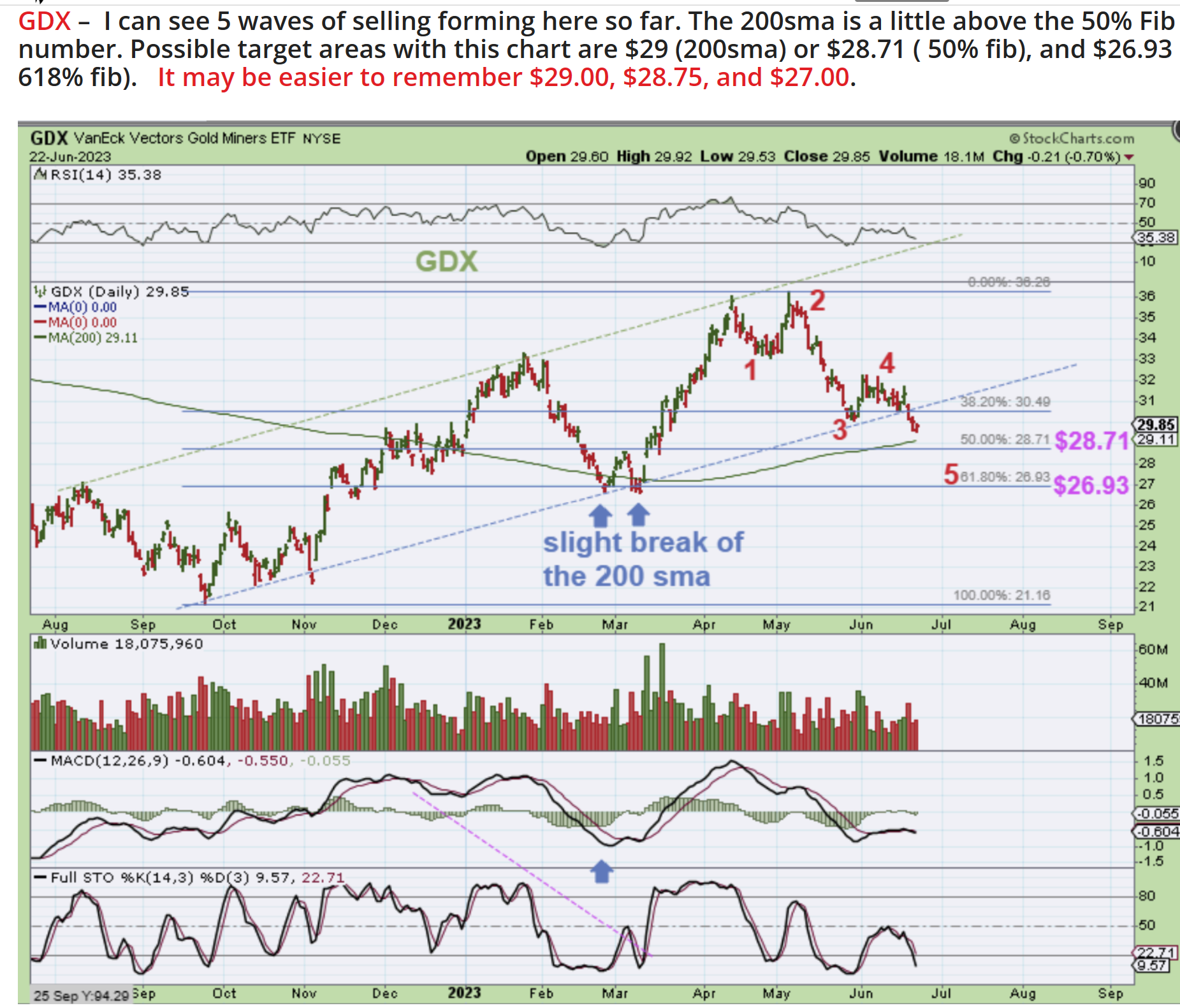 GDX -This was also in Fridays report and I’m repeating it here, because I think that it is a good guide to keep track of.