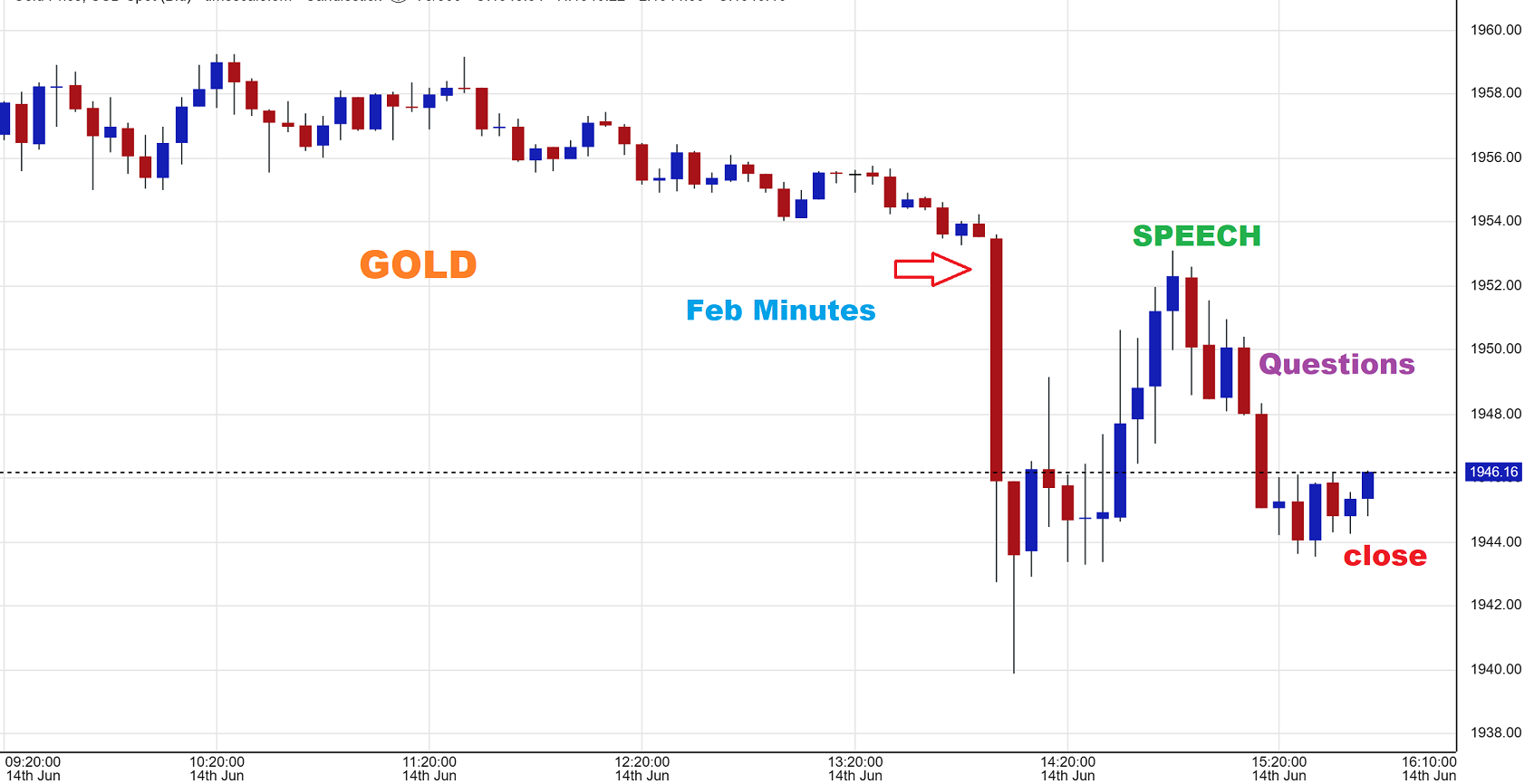 GOLD ( 5 minute chart) crashed when the Fed paused rates, but then it stalled and waited for the Fed Speech…