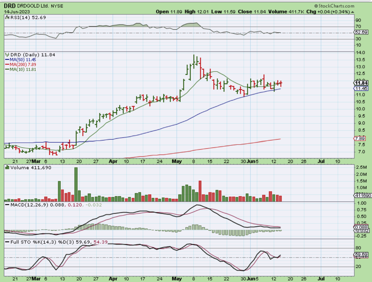 I mentioned that I was going to watch the stronger Miners ‘DRD’, and see if it sells off below the 50sma as a sign or hint that weakness is here. So far, it is still holding up.