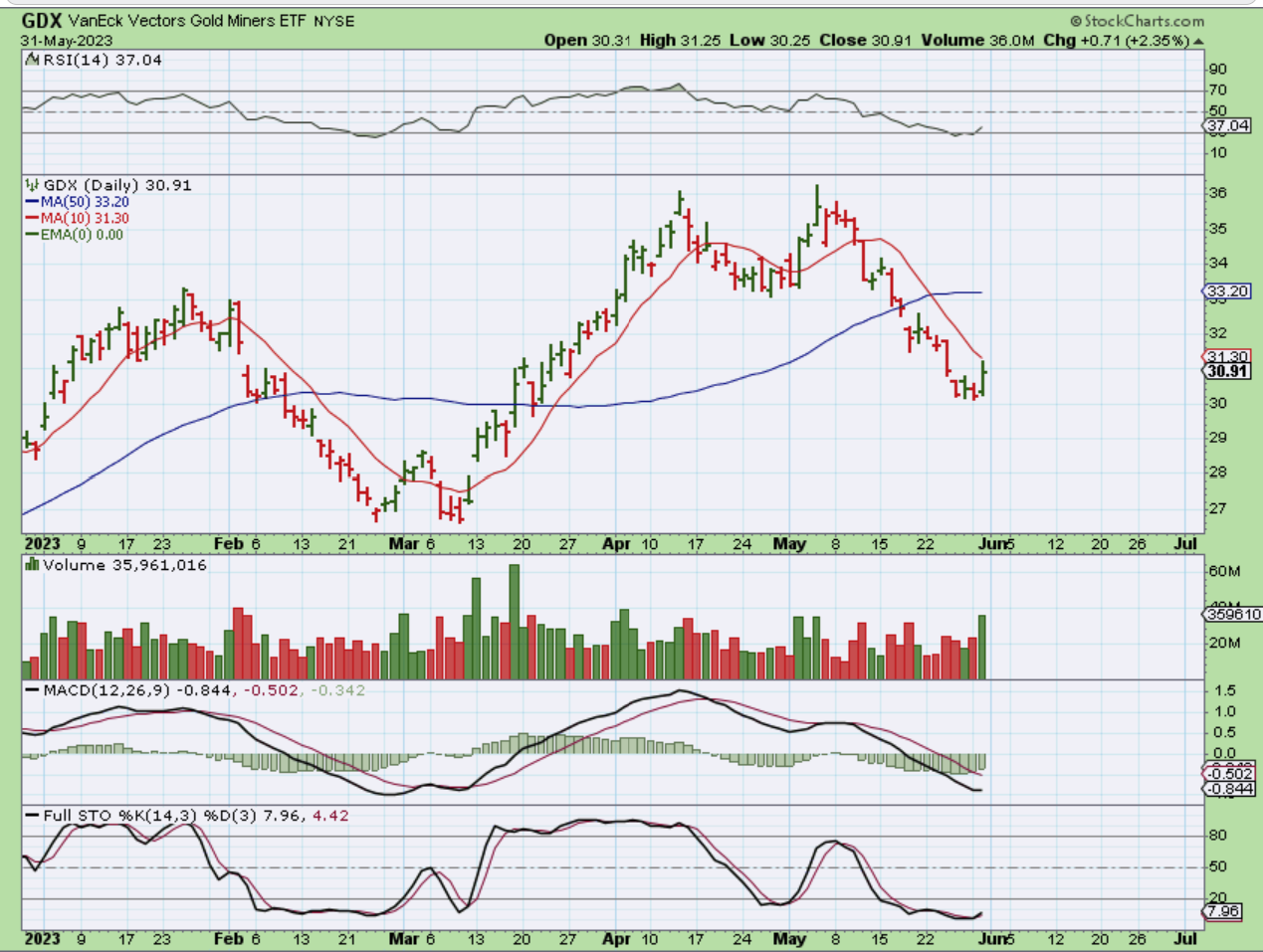 GDX – And we got a Bounce here with the Miners too. You’ll notice that the GDX & GDXJ broke well below the 50sma so far, but…