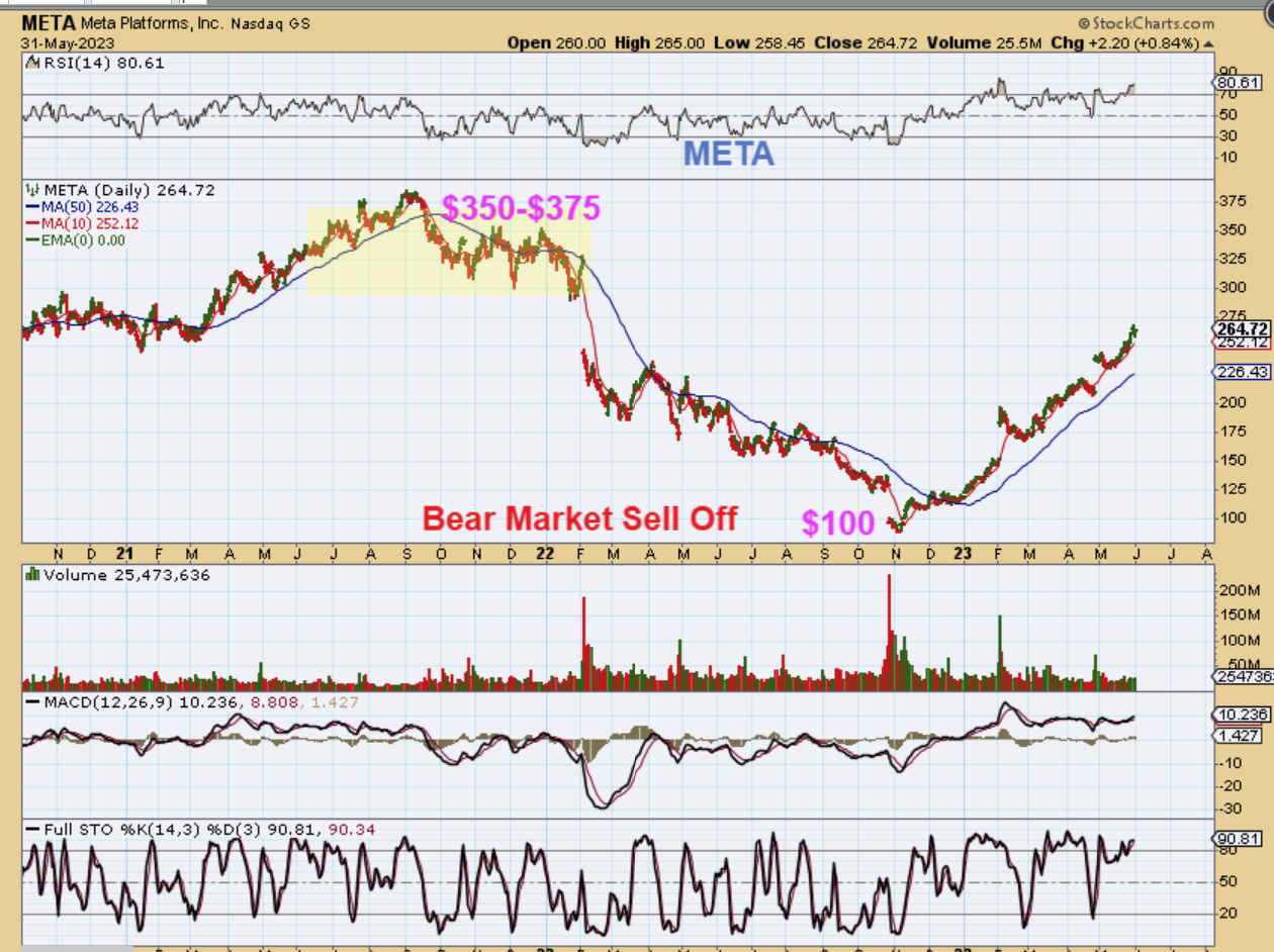 META, MSFT, NVDA, AAPL and a few others are nearing former highs already. That was a BIG Bear Market crash, but they’ve started to recover. META dropped from the $375 area to under $100! It is now at $260 since the late 2023 ICL, so the thought is that some of these laggers still in a base or now breaking from a base may recover too, if the 2nd part of 2023 remains bullish too.