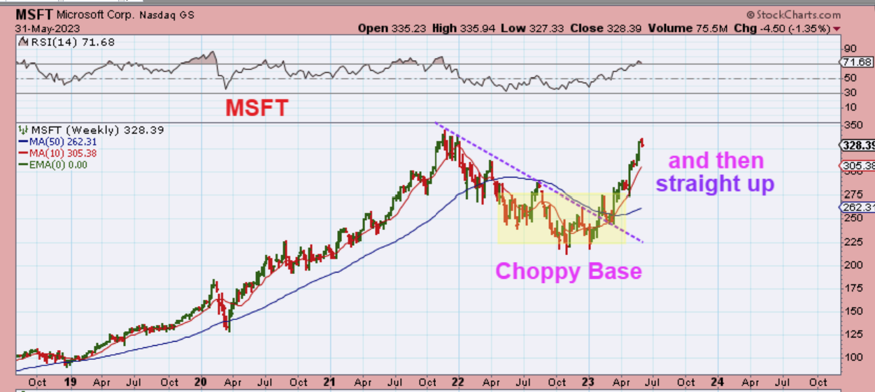 For Example: Here you can see how MSFT had that bear market sell off from $350 to under $225, but after forming a base, it is back up near $335 yesterday.